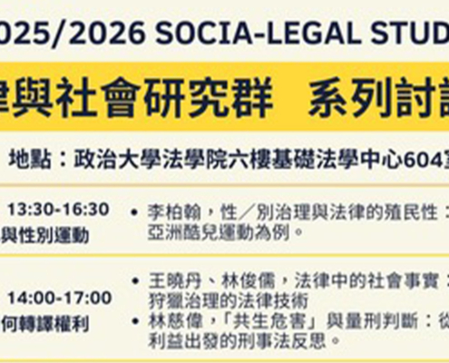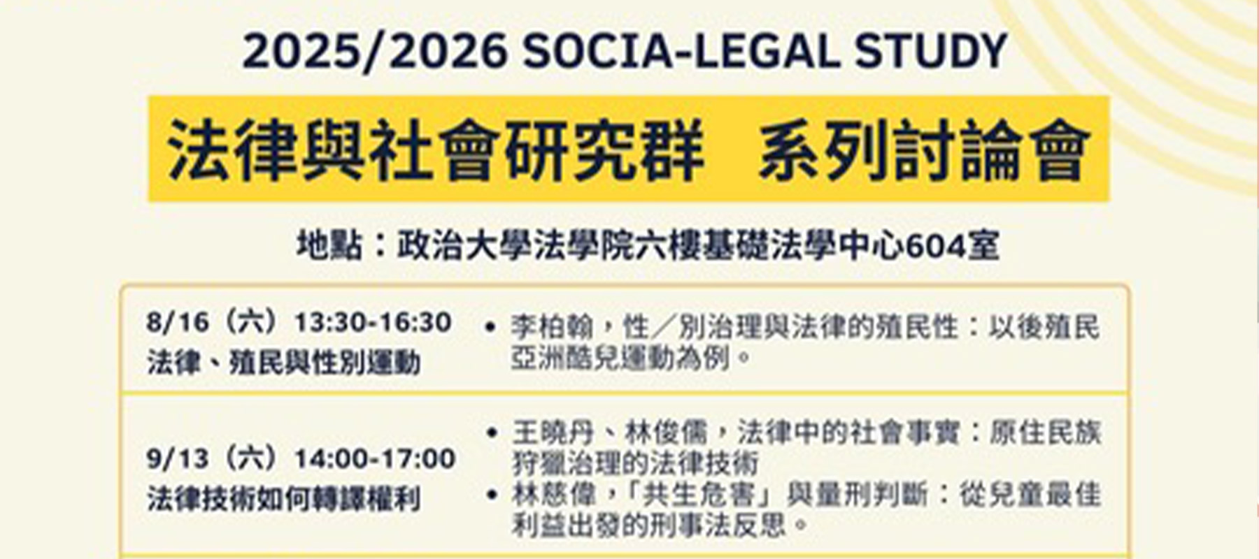 法律與社會研究群系列討論會於2025年夏天陸續登場,共有9場次(16篇主題報告、1場裁判研討)...