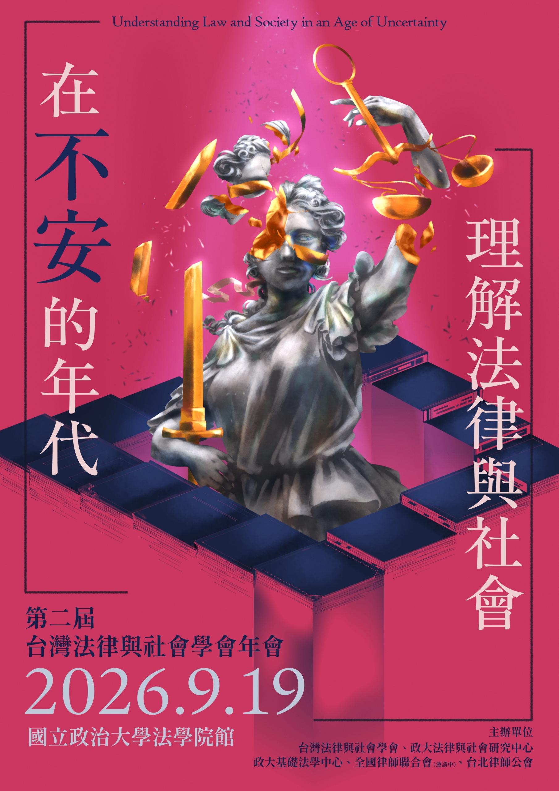 然而,不安不只意味著崩解,也揭露權力的裂縫。在權力爭逐、制度壓力與現實風險交錯的結構裡,行動者並不只是被動受法律支配的人。有人透過法律動員重新命名傷害;有人在制度邊界上與法律相互試探、協商、抵抗;有人則在看似無力的位置上,慢慢改變了理解、使用與感受法律的方式。正是在這些未必壯觀卻足以撼動秩序的行動裡,我們看見了更多法律與社會持續交織與相互改寫的面貌。正因如此,我們期望能透過本年度的年會,邀請大家一起在充滿不安的年代理,一起進入那些仍在形成中的社會現場,重新探問與理解法律、權力、主體與社會間的關係。